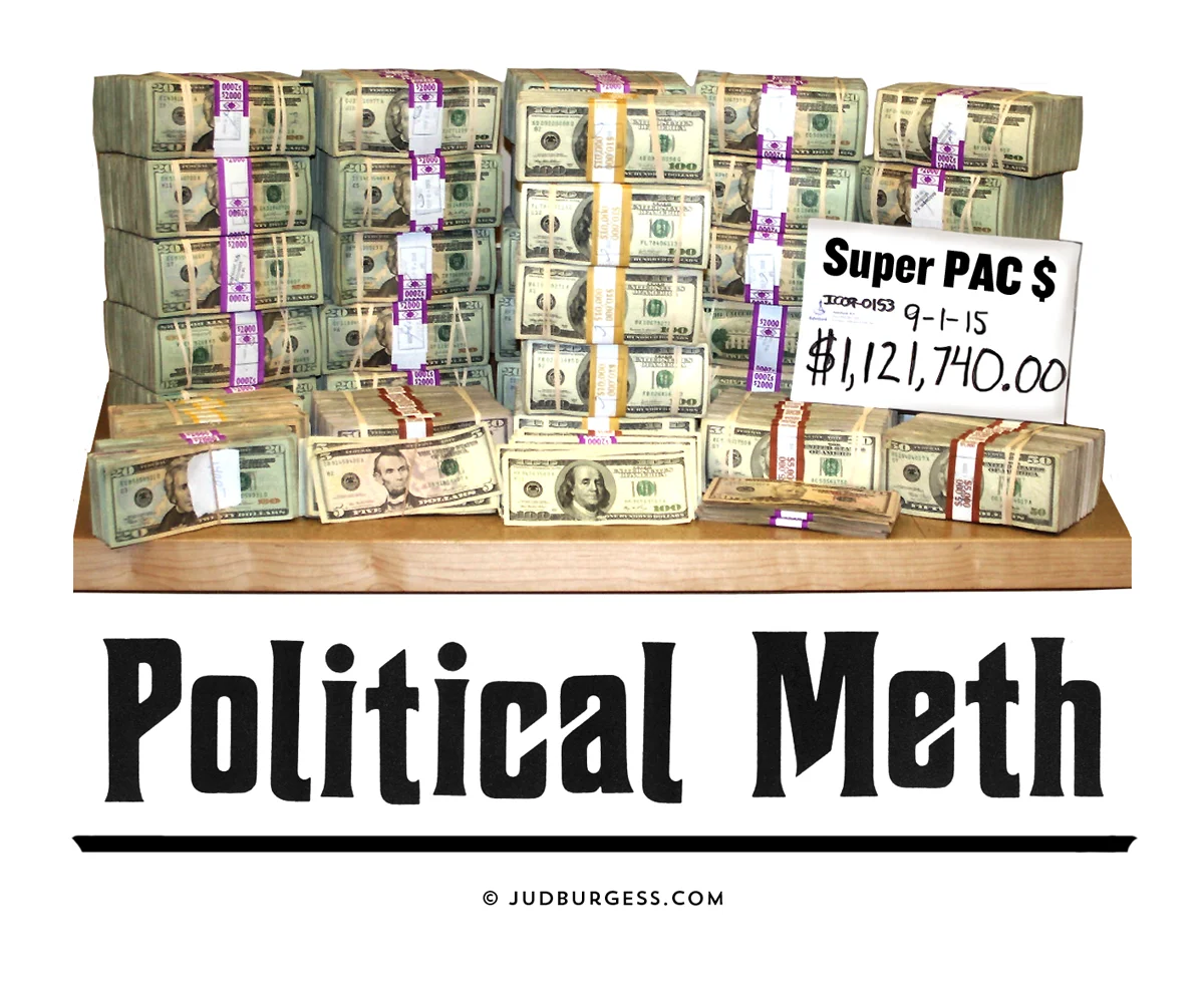 Just like meth, Super PAC money is addictive to politicians and should be illegal. It makes them do stupid things like sell out the people they were elected to represent in favor of sucking up to the corporate giants that buy their elections. February © Jud Burgess