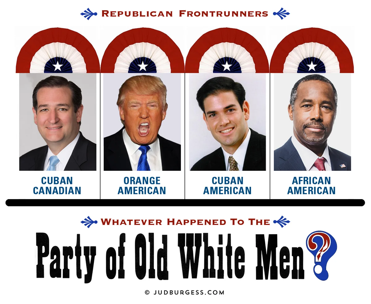 Republican politicians are looking a bit different these days...gotta roll with the changing face of America. Unfortunately looks only go skin deep. What’s inside these pols hasn’t changed. February 2016 © Jud Burgess