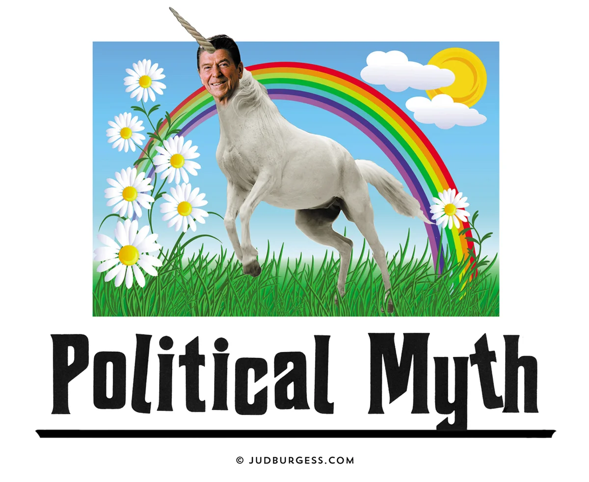 Why do Republicans continue to mythologize and deify Ronald reagan as if he was God’s gift o America? They drop his name in every debate...associate themselves and their ideology with him in every public appearance...promise to bring back the Reagan era if they are elected. There is a serious disconnect between the reality and the myth. February © Jud Burgess