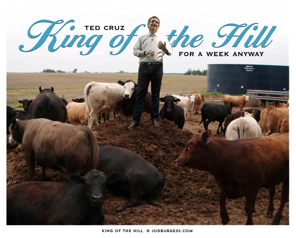 Ted Cruz wins this weeks’ round of “King of the Hill.” He’ll get knocked down soon enough, and when he does, he’ll need to clean those boots real good.