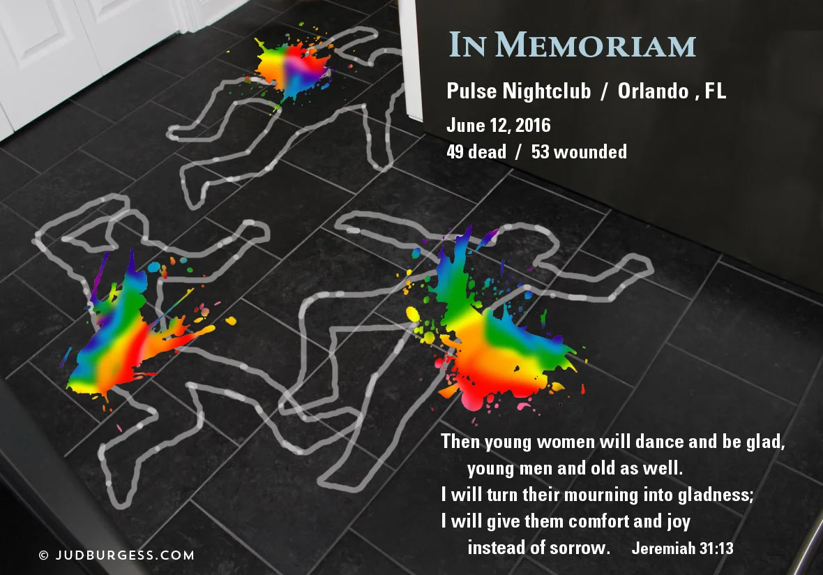 In the midst of this human tragedy is the joy of knowing that they are now dancing the streets of gold with our creator where they will never again have to fear not being accepted for who they are. They are accepted by The One that matters. © Jud Burgess, July 2016