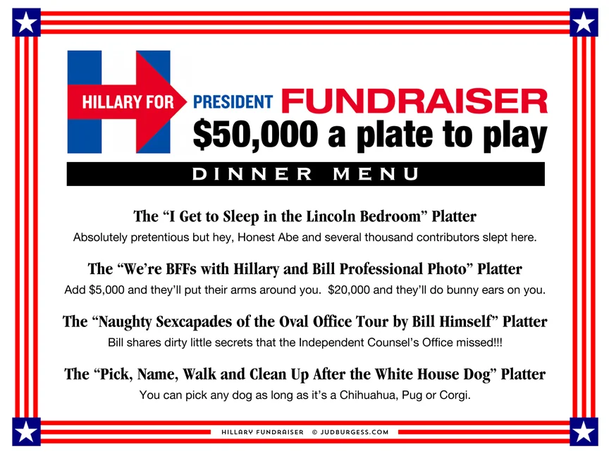 I'm poking fun at the tendency of some people of means who have $$$ to burn and use it to curry favor with politicians.