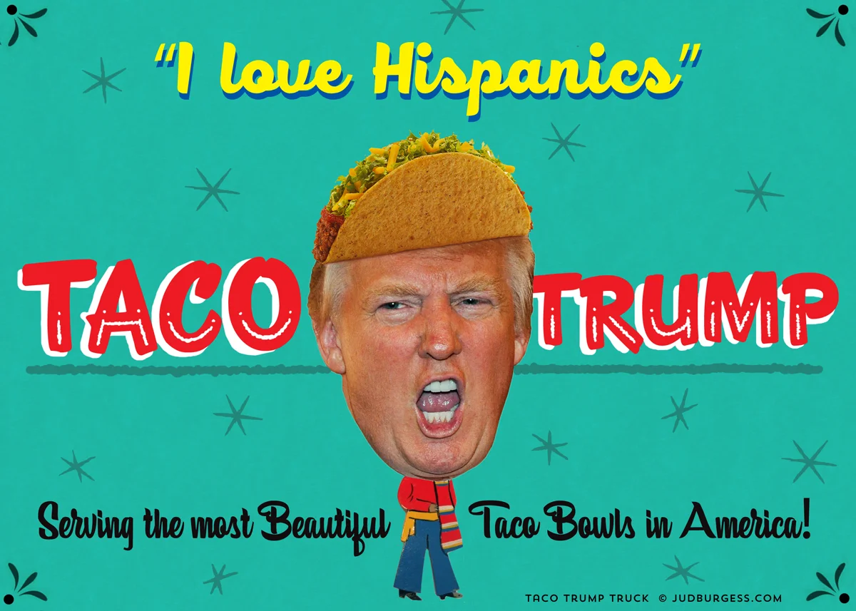 Inspired by Trump's infamous Cinco de Mayo tweet about Trump Tower's taco bowls AND also by his Latino surrogates' statement about there being Taco Trucks on every corner if Trump were to lose the presidency.