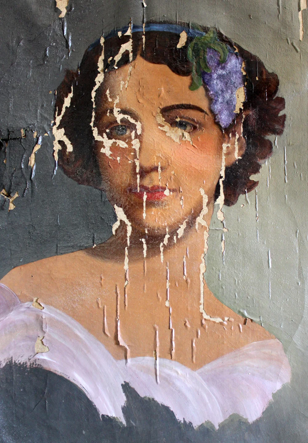 This beautiful portrait in the process of deterioration hangs in my office today. Probably done by an itinerant portrait painter in the 1800's. I love the way he spent his time capturing her face while doing the rest in quick and lively brushstrokes. This woman’s portrait sat in a barn for several decades fading into obscurity until her memory was resurrected for at least as long as the paint holds to the canvas.